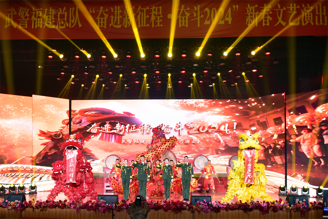 玉兔歡歌辭舊歲,祥龍起舞賀新春。近日,武警福建總隊舉辦“奮進新征程·奮斗2024”新春文藝演出,官兵和家屬歡聚一堂,喜迎新春。