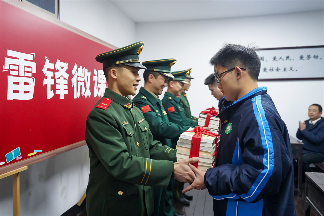 “沒有刻板的說教,講得深入淺出,很有學(xué)習(xí)借鑒的意義。”來自“雷鋒故鄉(xiāng)雷鋒兵”的授課,給雷鋒學(xué)校的學(xué)生們帶來不一樣的感受。課后,官兵們還給學(xué)生們贈(zèng)送了雷鋒書籍。