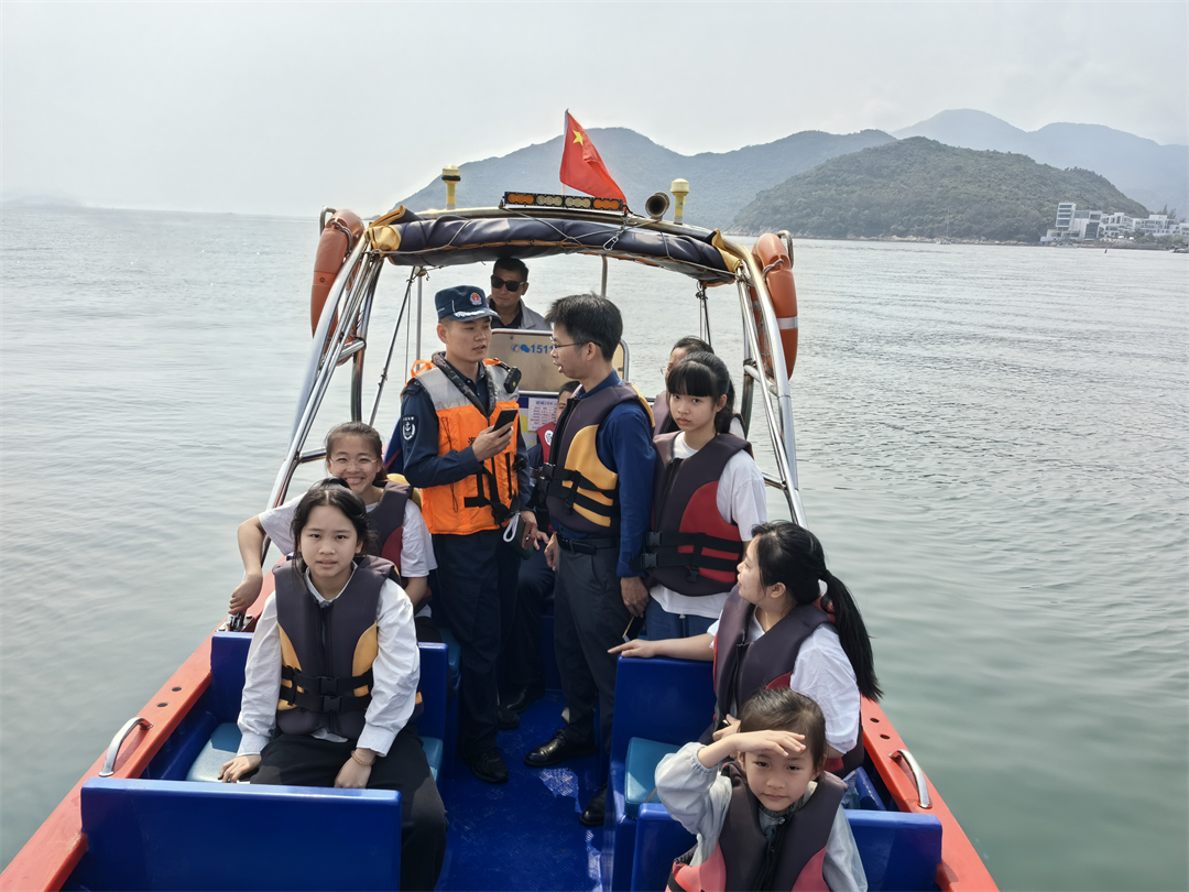 圖為執(zhí)法員向海上游客科普國(guó)家安全相關(guān)知識(shí)。