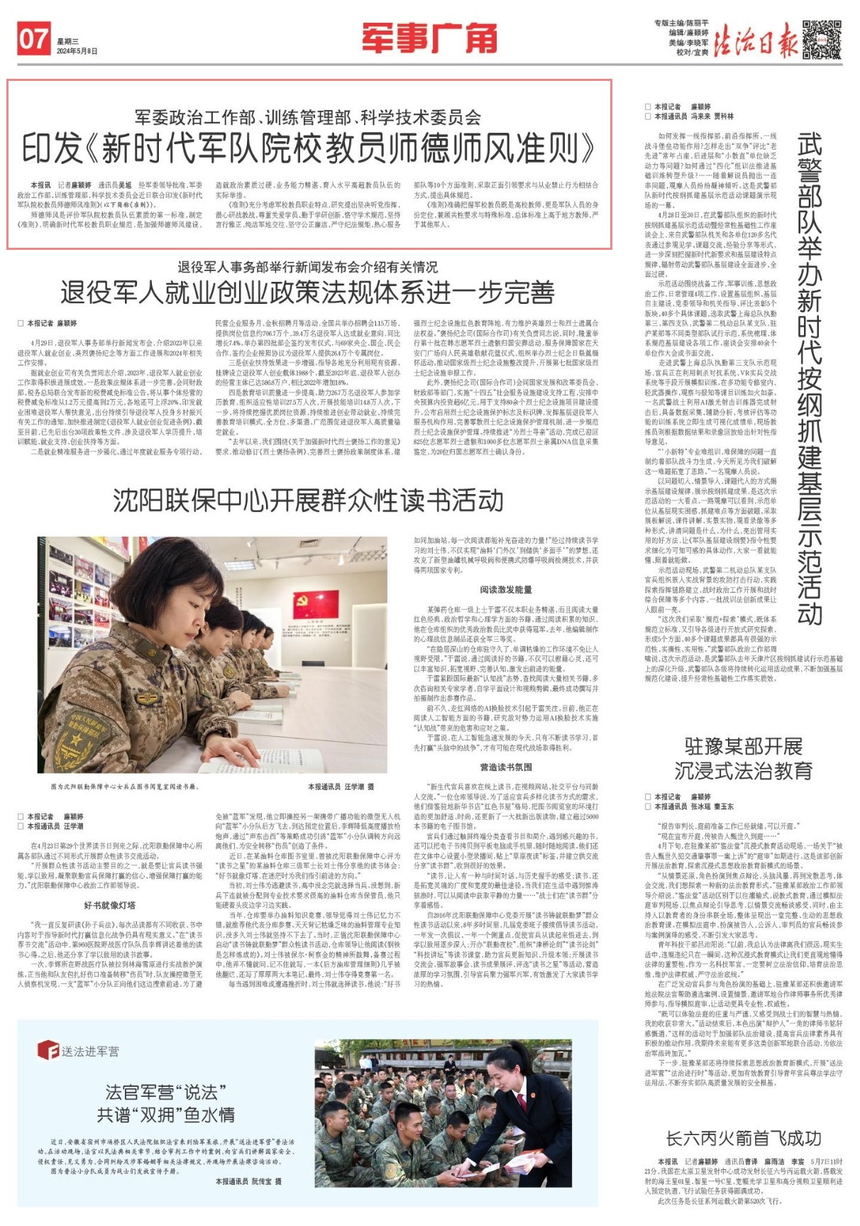 師德師風(fēng)是評(píng)價(jià)軍隊(duì)院校教員隊(duì)伍素質(zhì)的第一標(biāo)準(zhǔn),制定《準(zhǔn)則》,明確新時(shí)代軍校教員職業(yè)規(guī)范,是加強(qiáng)師德師風(fēng)建設(shè),造就政治素質(zhì)過(guò)硬、業(yè)務(wù)能力精湛、育人水平高超教員隊(duì)伍的實(shí)際舉措。