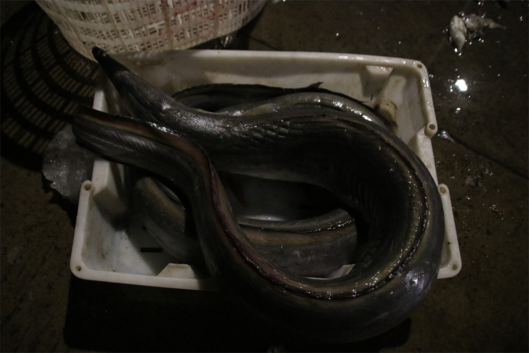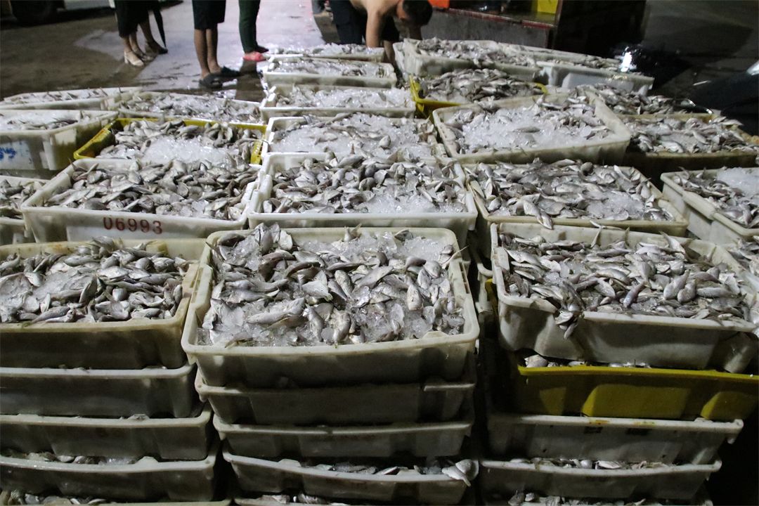 圖為現(xiàn)場(chǎng)查獲的涉嫌非法捕撈漁獲物。