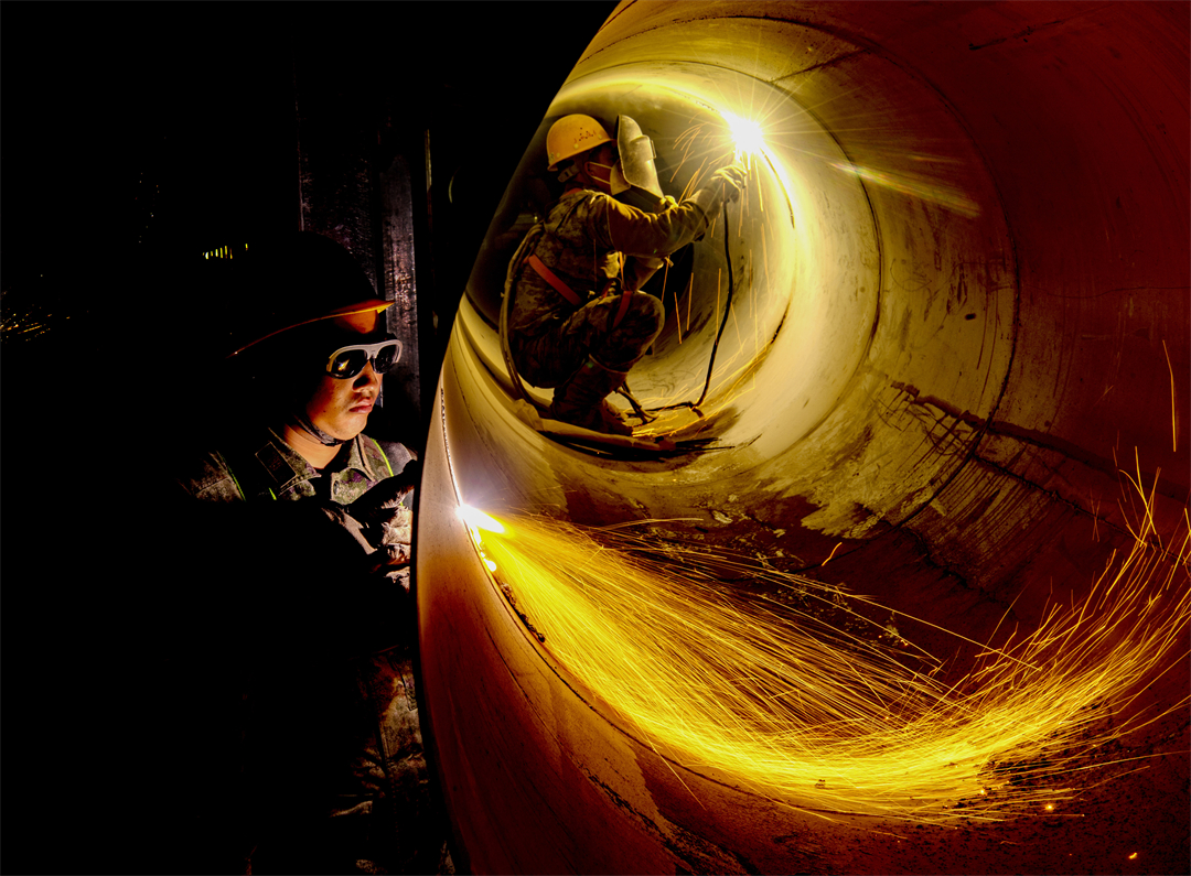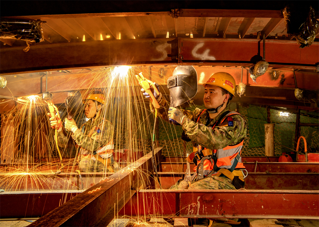 圖為火箭軍某部官兵正在焊接作業(yè)。
