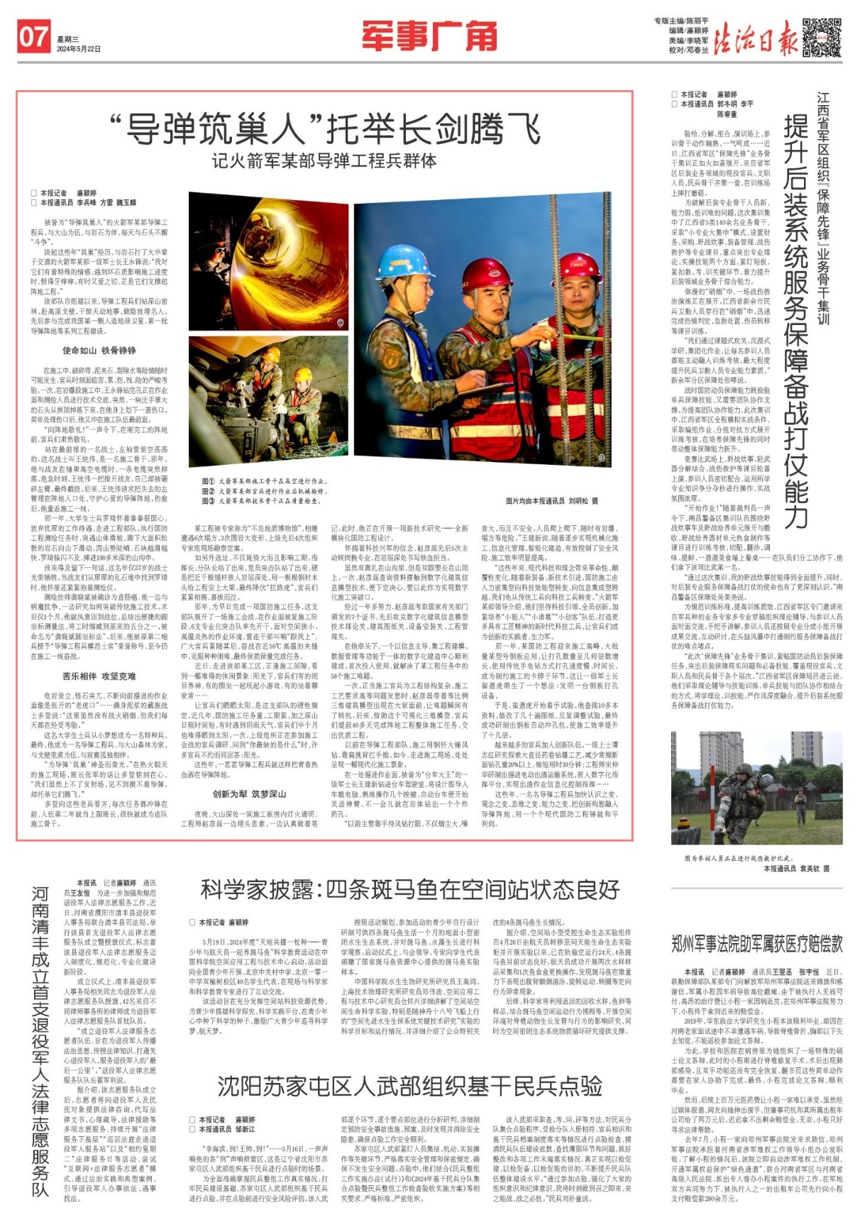 該部隊(duì)自組建以來,導(dǎo)彈工程兵們鉆深山密林、赴高原戈壁,干驚天動(dòng)地事、做隱姓埋名人,先后參與完成我國(guó)第一顆人造地球衛(wèi)星、第一批導(dǎo)彈陣地等系列工程建設(shè)。