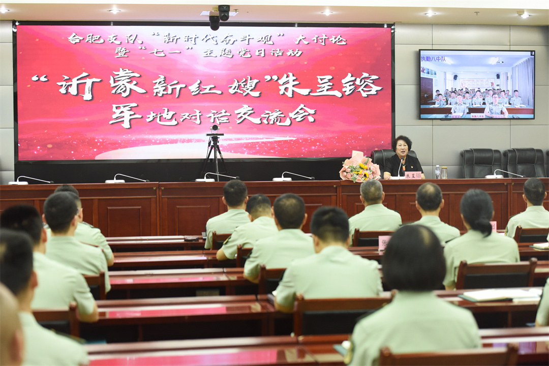 “七一”前夕,武警安徽總隊合肥支隊開展“新時代奮斗觀”大討論暨“七一”主題黨日活動。其間,邀請“全國最美擁軍人物”“全國爭先創(chuàng)優(yōu)優(yōu)秀共產(chǎn)黨員”“全國巾幗建功標(biāo)兵”“沂蒙新紅嫂”朱呈镕來到軍營,與支隊官兵對話交流,分享奮斗故事,傳播沂蒙精神。激勵廣大官兵賡續(xù)紅色血脈,砥礪初心使命,立足本職崗位奮斗拼搏,書寫精彩軍旅樂章。