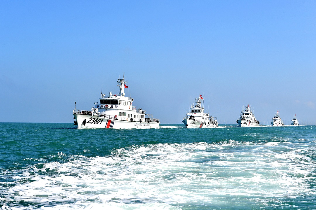 圖為海警艦艇執(zhí)法編隊(duì)航行。