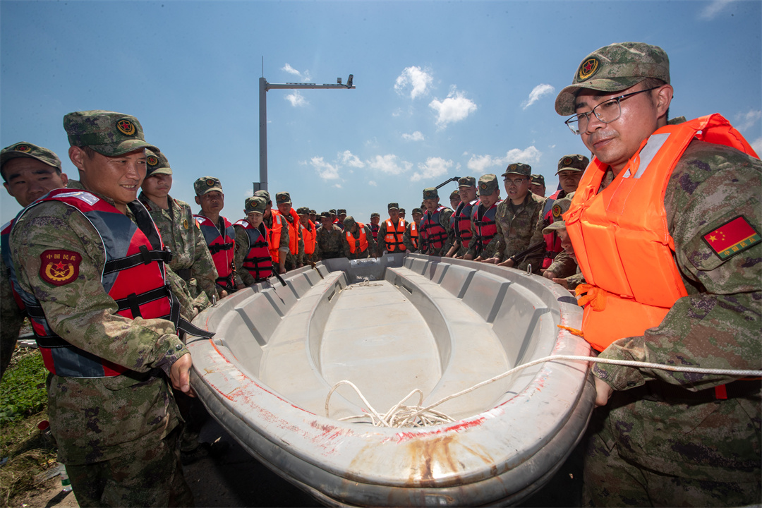 圖為湖南省軍區(qū)民兵攜帶沖鋒舟開展搶險(xiǎn)救援工作。張必聞 攝