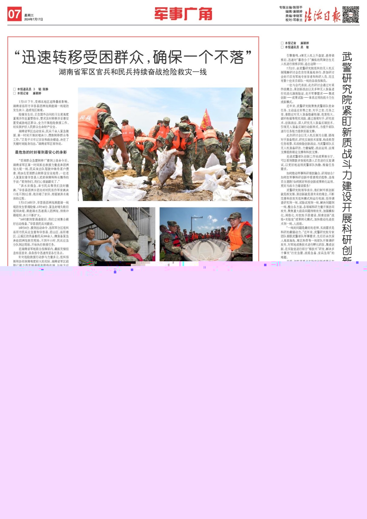湖南省軍區(qū)出動(dòng)官兵、民兵千余人緊急馳援,第一時(shí)間開展封堵決口、搜救轉(zhuǎn)移群眾等工作?!罢瞧饺绽斡涀谥己驼五懺欤瑳Q定了關(guān)鍵時(shí)刻挺身而出。”湖南省軍區(qū)領(lǐng)導(dǎo)說(shuō)。