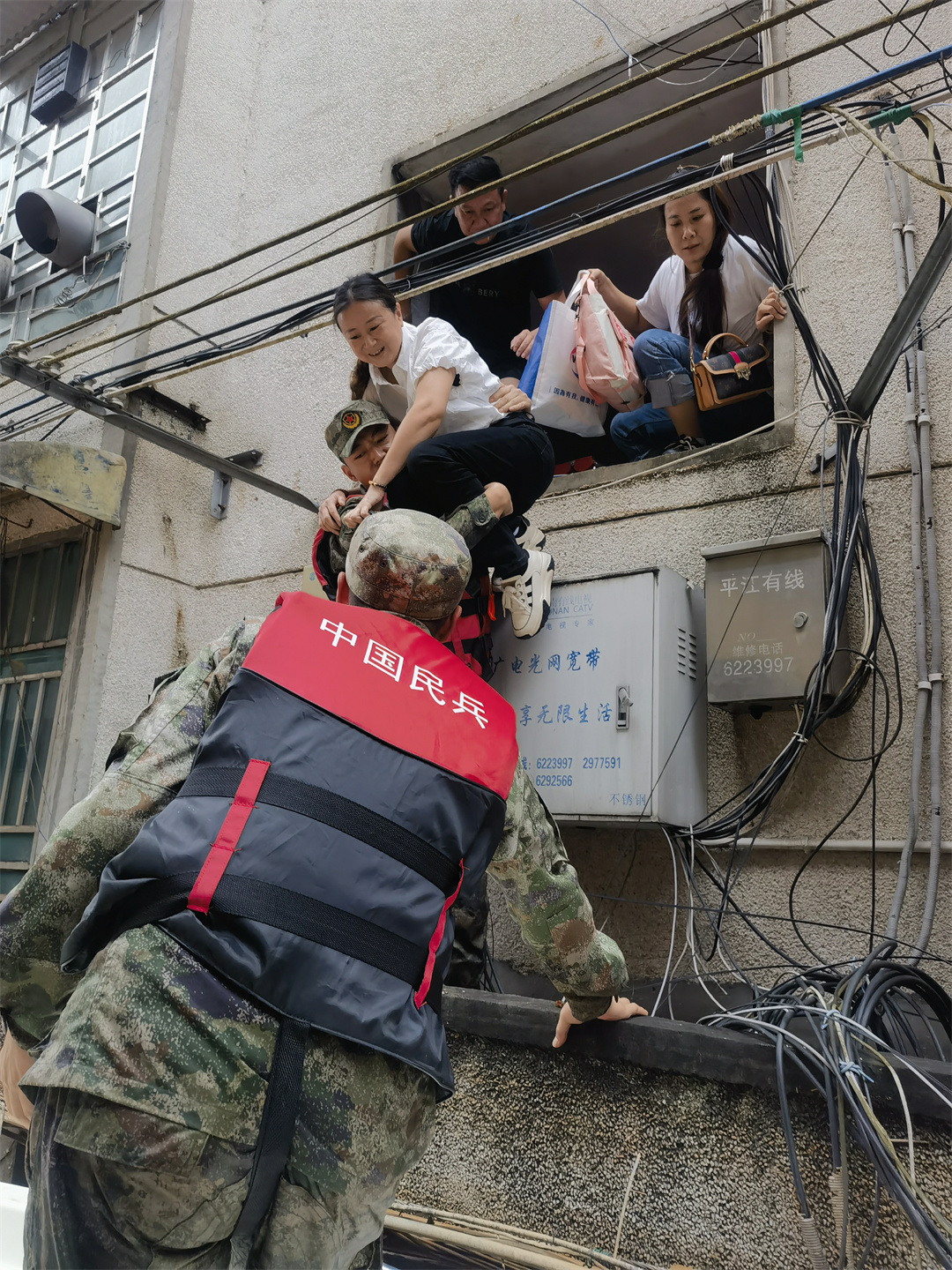 圖為湖南省軍區(qū)民兵轉(zhuǎn)移受困群眾。