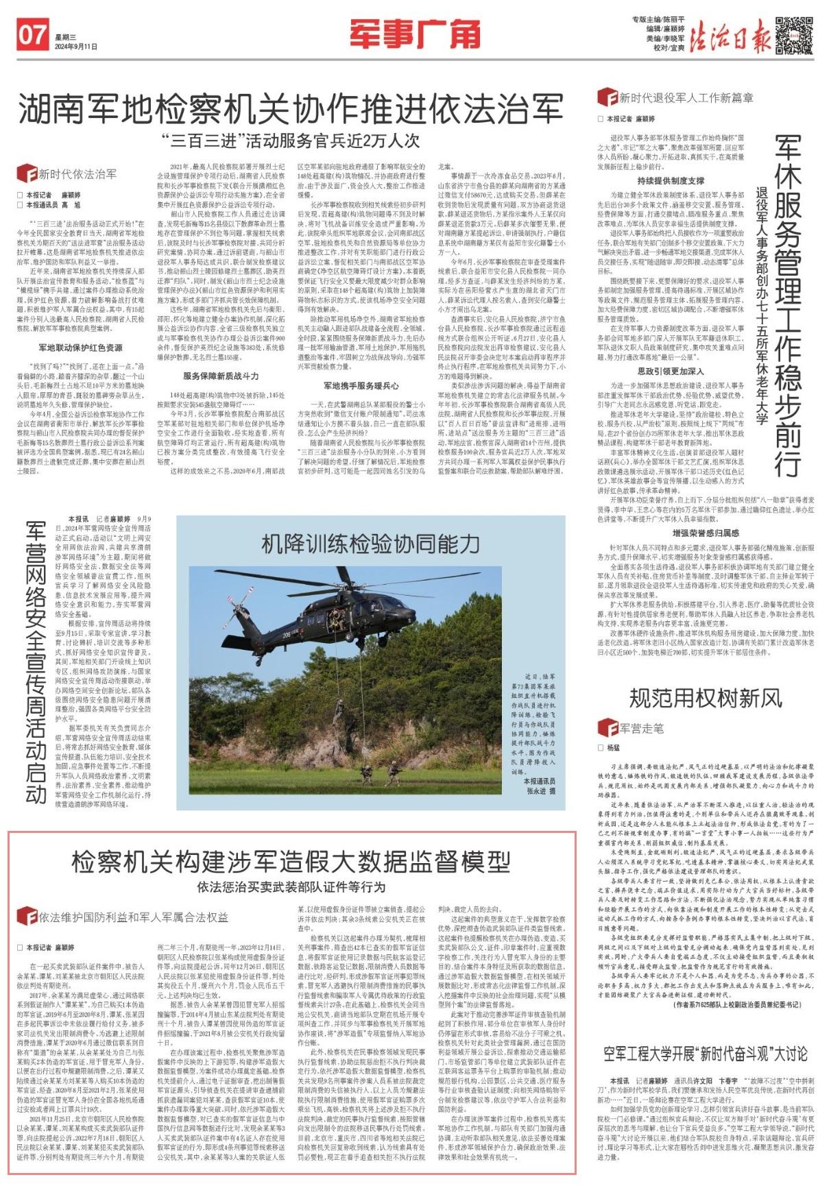 在辦理該涉軍案件過程中,檢察機關(guān)落實軍地協(xié)作工作機制,與部隊有關(guān)部門加強溝通協(xié)調(diào),主動聽取部隊相關(guān)意見,依法妥善處理案件,形成涉軍領(lǐng)域保護合力,確保政治效果、法律效果和社會效果有機統(tǒng)一。