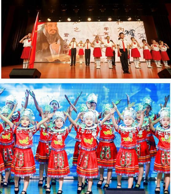 室內(nèi)舞臺(tái)上,精彩節(jié)目輪番上演,讓人目不暇接。詩歌朗誦《中國話》鏗鏘有力,京劇《貴妃醉酒》華麗細(xì)膩,女生表演唱《阿妹的苗寨》歡快動(dòng)人……每一個(gè)節(jié)目都是孩子們用心血和熱情澆灌的碩果,他們用自己的方式向祖國母親獻(xiàn)上最真摯的祝福。
