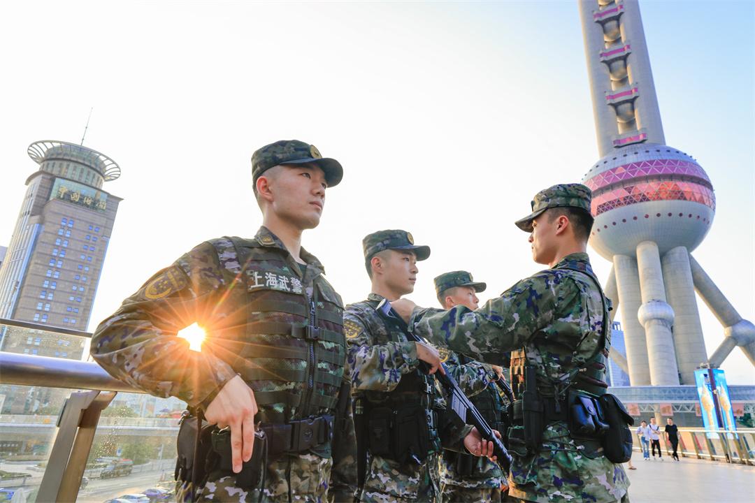 迎著霞光,武警上??傟爤?zhí)勤第二支隊某中隊巡邏車穿梭在上海市浦東新區(qū)陸家嘴金融貿(mào)易區(qū),這里是官兵常年守護的地方。