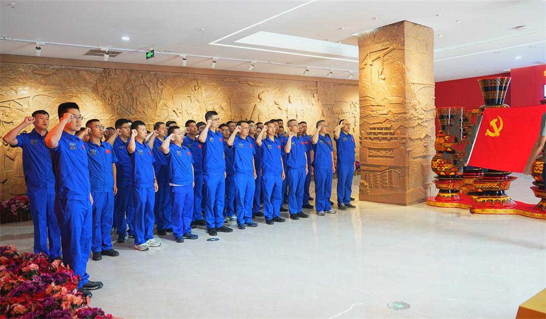 “我宣誓!我志愿加入中國(guó)共產(chǎn)黨……”在展廳,技術(shù)部黨員重溫入黨誓詞。全體黨員面對(duì)鮮紅的黨旗,莊重舉拳宣誓。錚錚誓言激勵(lì)著全體黨員在新征程上加壓奮進(jìn),堅(jiān)定向著建設(shè)世界一流航天發(fā)射場(chǎng)目標(biāo)砥礪前行。