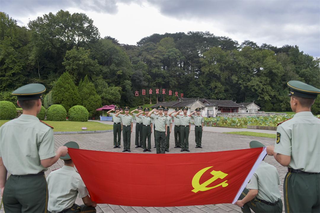 “1929年12月,彪炳史冊(cè)的古田會(huì)議在此召開(kāi),確立了‘思想建黨、政治建軍’的根本原則?!毙卤玛?duì)后,上杭中隊(duì)指導(dǎo)員呂佳輝再次把“下隊(duì)第一課”放在古田會(huì)議會(huì)址。