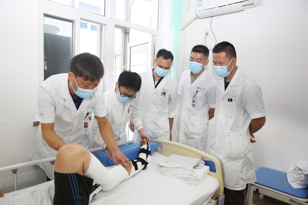 圖為骨科醫(yī)學(xué)部顯微外科張建政主任為按照指南規(guī)范的標(biāo)準(zhǔn)進(jìn)行自體骨移植術(shù)后的患者檢查,結(jié)果顯示恢復(fù)良好。