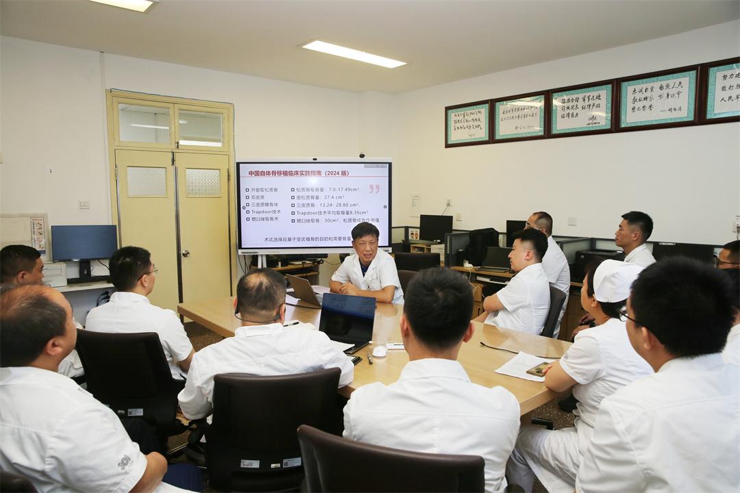 圖為骨科醫(yī)學(xué)部顯微外科張建政主任帶領(lǐng)團(tuán)隊討論和研究指南的臨床適用范圍。