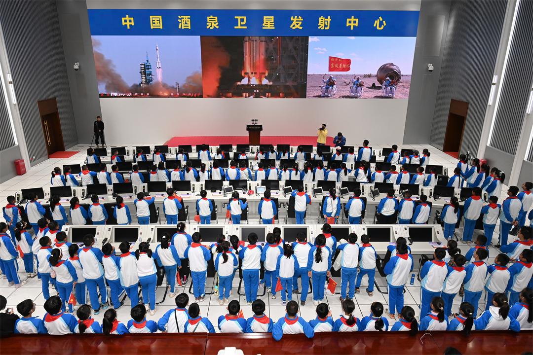 升旗儀式結束后,全體少先隊員來到東風指揮控制大廳,這里是航天發(fā)射的任務指揮中心,神舟十九號發(fā)射任務圓滿成功的大紅屏透著喜慶的氛圍,這塊屏幕背后凝結著許許多多航天科技工作者的智慧和汗水,是他們共同托舉神箭飛天。