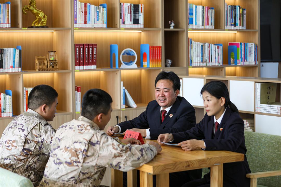 “我們法院依托‘背包法庭’工作模式,積極開(kāi)展‘送法進(jìn)軍營(yíng)’等活動(dòng),為部隊(duì)和官兵提供高效便捷的‘上門(mén)式’法律服務(wù),有效維護(hù)了軍人軍屬合法權(quán)益?!比魇刑幙h人民法院民事審判庭副庭長(zhǎng)丁鑫說(shuō)。
