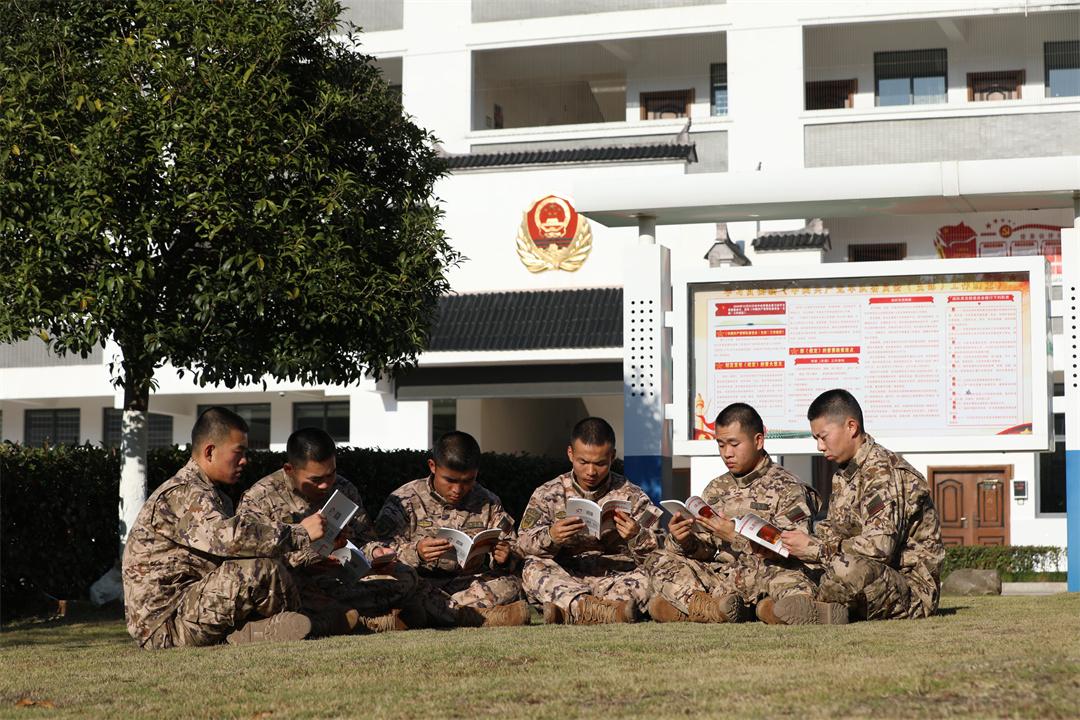 圖為官兵學(xué)習(xí)法律知識(shí)。