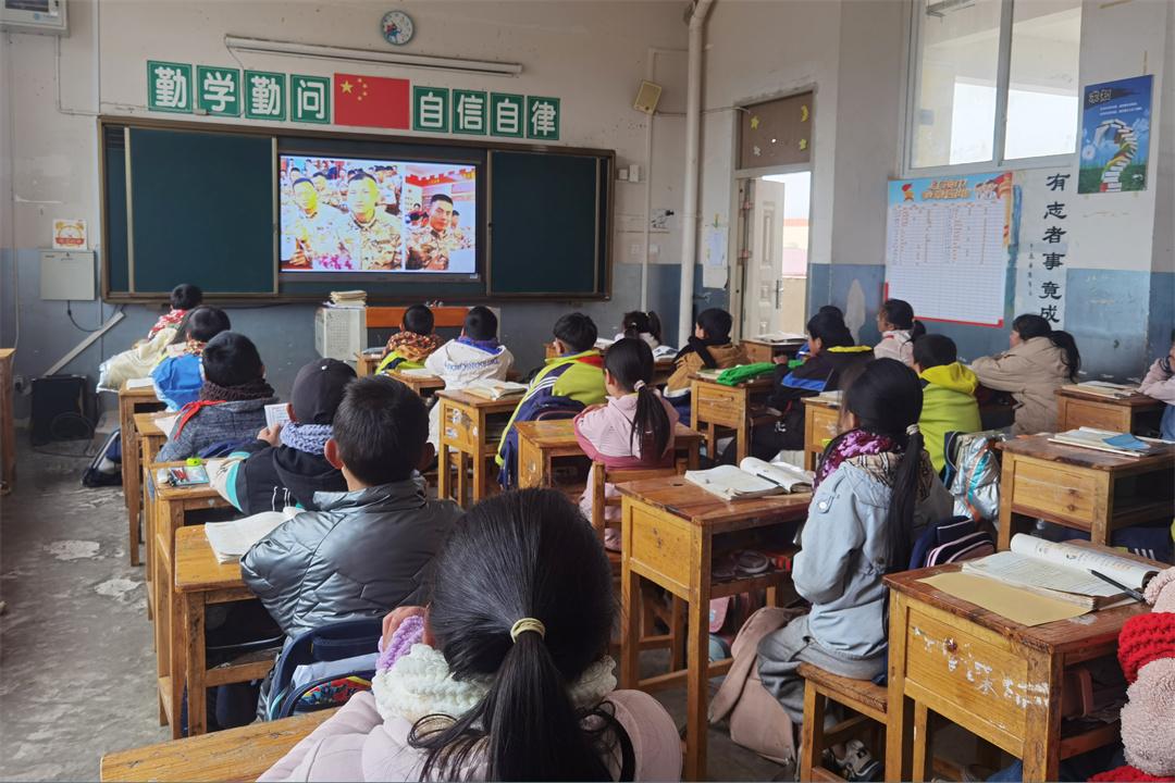圖為孩子們認(rèn)真觀看祝福視頻。