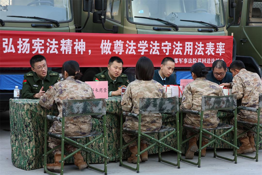 自去年年底開始,針對(duì)年終歲尾川渝部隊(duì)法律服務(wù)需求較高的實(shí)際,成都軍事法院結(jié)合正在開展的尊法學(xué)法守法用法活動(dòng)和“憲法宣傳周”活動(dòng),組織開展“法律服務(wù)進(jìn)班排”專題系列活動(dòng)。軍事法官們走進(jìn)營連排班,針對(duì)不同行業(yè)類型單位特點(diǎn),通過組織普法授課、贈(zèng)送法律宣傳產(chǎn)品、提供維權(quán)服務(wù)、合作共建法治軍營等形式宣揚(yáng)法治理念,為官兵解憂。