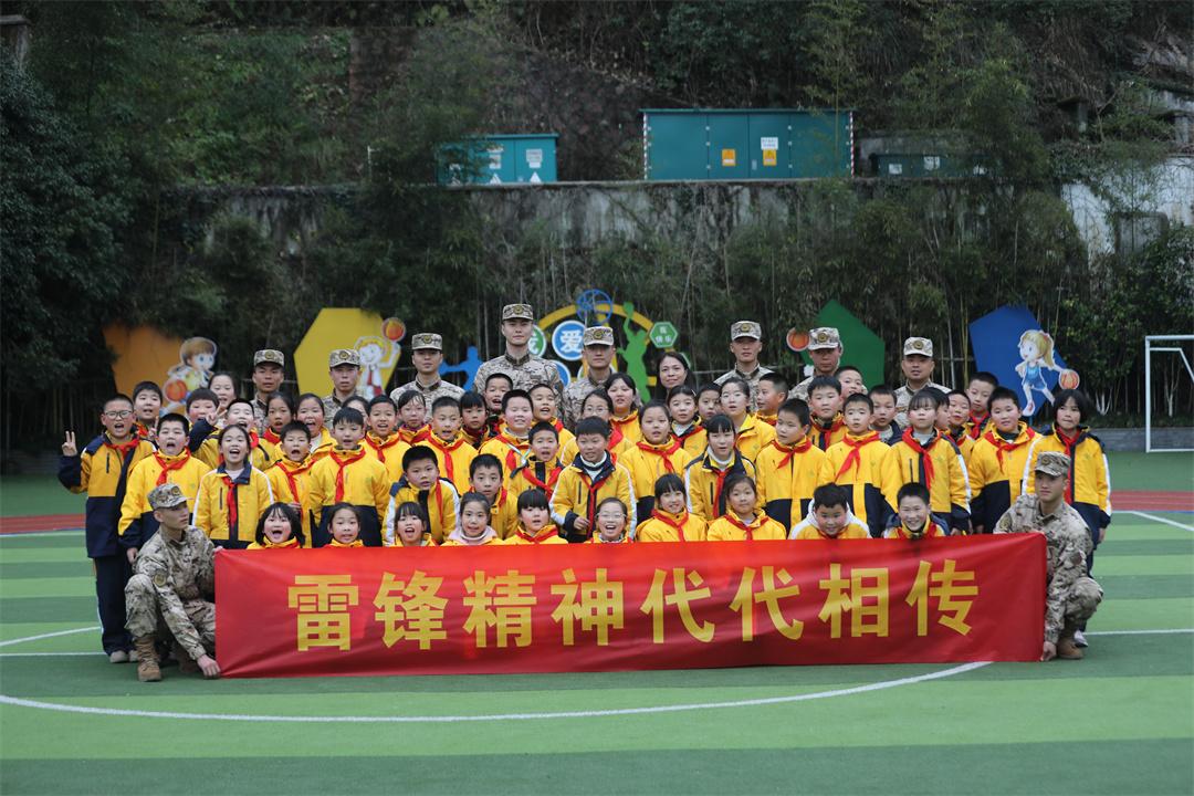圖為武警官兵在駐地小學(xué)開展“雷鋒精神代代傳”主題活動(dòng)。