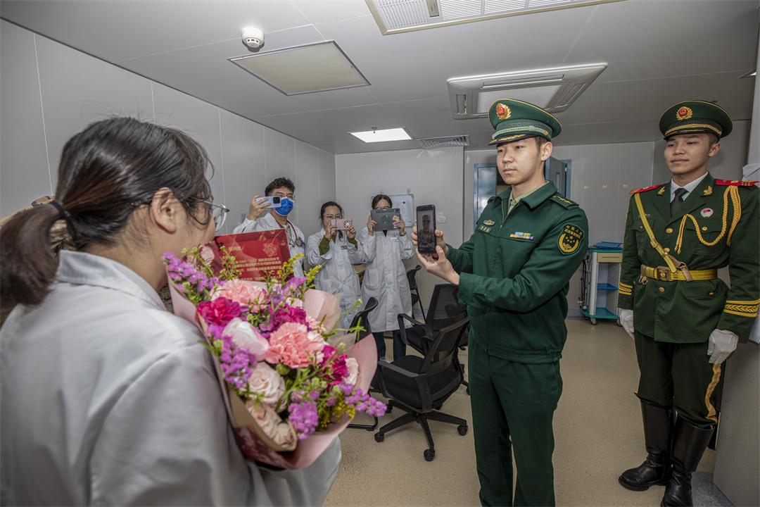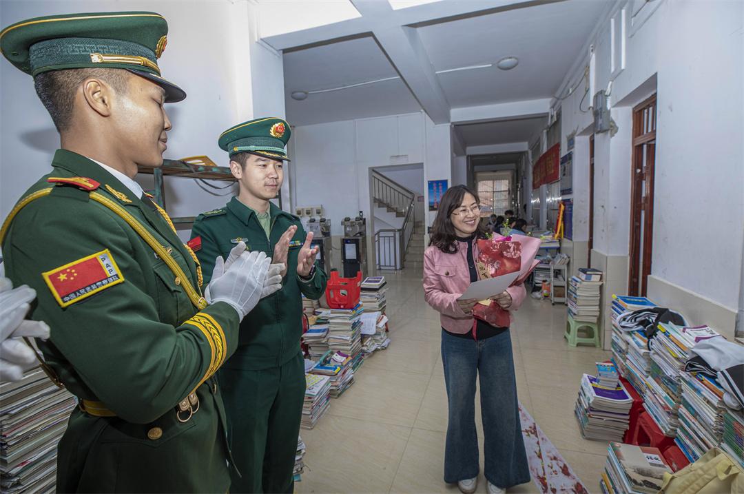 在“三八”國(guó)際婦女節(jié)來(lái)臨之際,武警廣西總隊(duì)百色支隊(duì)“武警專(zhuān)遞”再次出發(fā),帶著鮮花與賀卡,向駐地官兵家屬送去節(jié)日祝福和問(wèn)候。