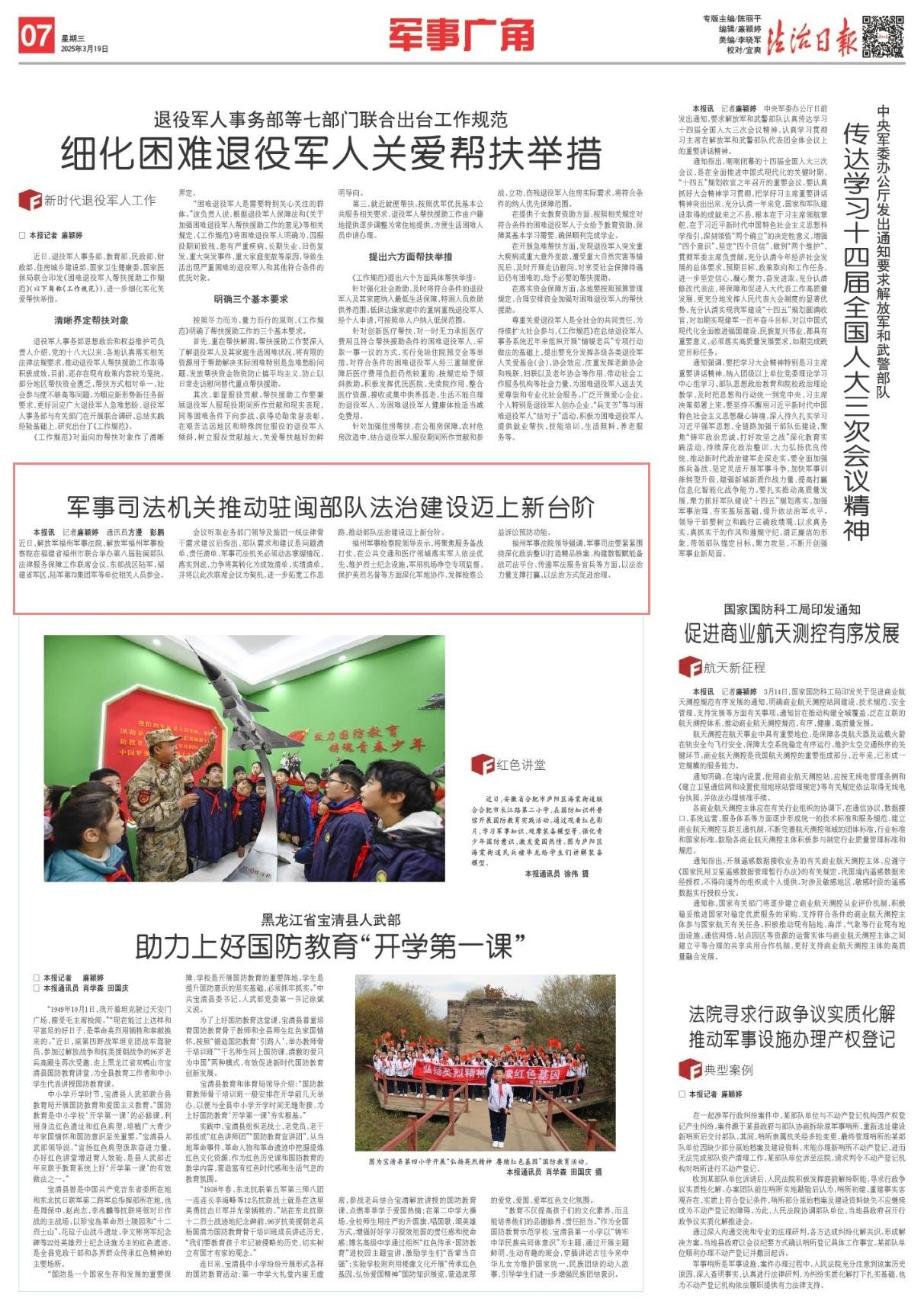 福州軍事檢察院領(lǐng)導(dǎo)表示,將聚焦服務(wù)備戰(zhàn)打仗,在公共交通和醫(yī)療領(lǐng)域落實(shí)軍人依法優(yōu)先、維護(hù)烈士紀(jì)念設(shè)施、軍用機(jī)場(chǎng)凈空專項(xiàng)監(jiān)督、保護(hù)英烈名譽(yù)等方面深化軍地協(xié)作,發(fā)揮檢察公益訴訟預(yù)防功能。