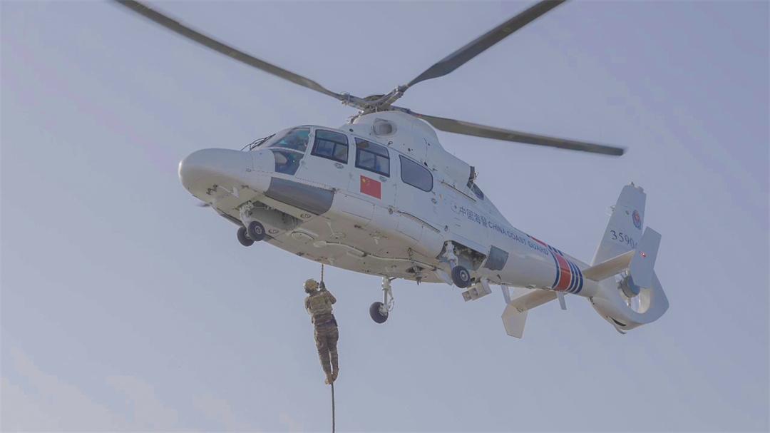 最刺激的當數(shù)“甲板突襲”現(xiàn)場:執(zhí)法員從直升機索降而下,快艇同時抵近包抄,水炮精準壓制目標船舵機,整套動作行云流水。