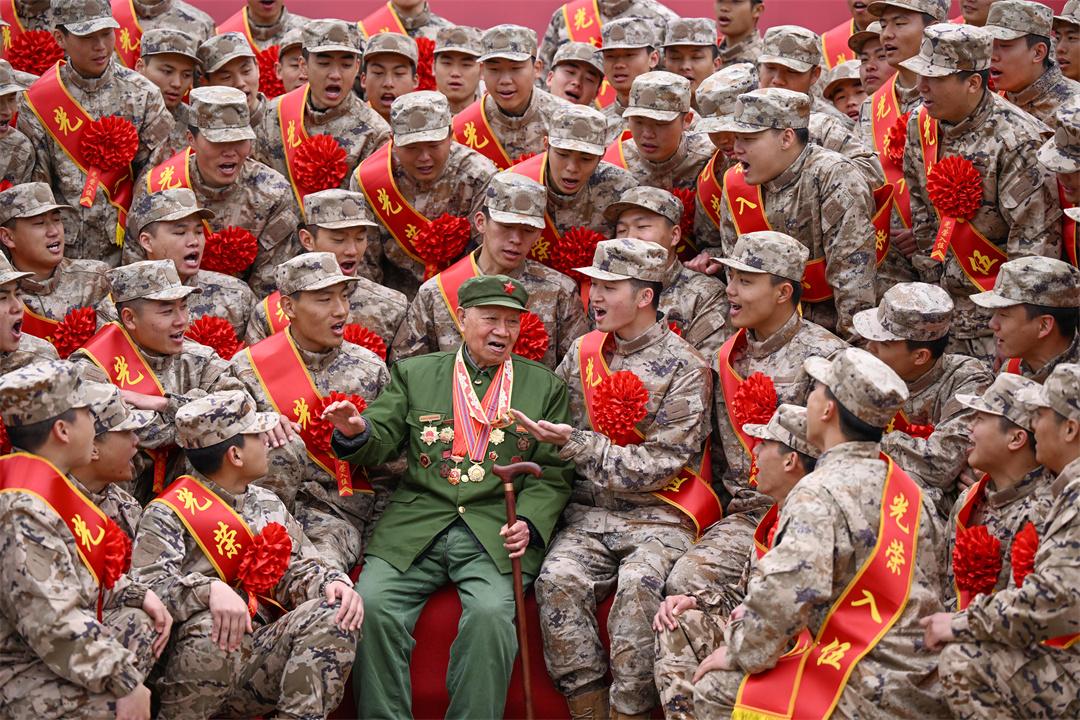 在今年上半年新兵役前教育訓(xùn)練中,安徽省合肥市廬陽區(qū)人武部邀請(qǐng)抗戰(zhàn)老兵宣鉅華與新兵分享交流從軍經(jīng)歷,講述戰(zhàn)斗故事,激勵(lì)廣大新兵扎根軍營(yíng)苦練軍事本領(lǐng),爭(zhēng)當(dāng)新時(shí)代“四有”革命軍人。