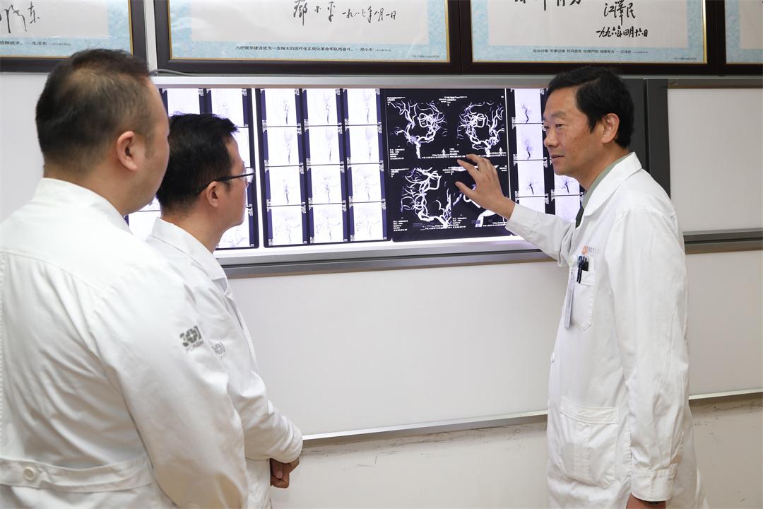 一場挽救生命的戰(zhàn)斗迅疾打響?!熬G色通道”馬上開啟,以最短時間、最快速度為患者做好頭顱核磁、(腦)血管造影等相關(guān)檢查,明確診斷為急性血栓導(dǎo)致的急性右側(cè)大腦中動脈梗死。