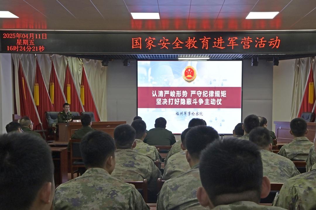 在駐閩部隊(duì)某部,普法課現(xiàn)場(chǎng)熱烈而嚴(yán)肅,軍地檢察官圍繞全民國(guó)家安全教育日主題,就國(guó)家安全基本內(nèi)涵、部隊(duì)常見(jiàn)網(wǎng)絡(luò)安全問(wèn)題等進(jìn)行授課,解讀刑法、國(guó)家安全法、反間諜法、網(wǎng)絡(luò)安全法等法律法規(guī);還原危害國(guó)家安全的鮮活案事例,剖析問(wèn)題根源、研究防范對(duì)策,揭示日常工作學(xué)習(xí)生活中的安全風(fēng)險(xiǎn),幫助官兵筑牢安全“防火墻”。