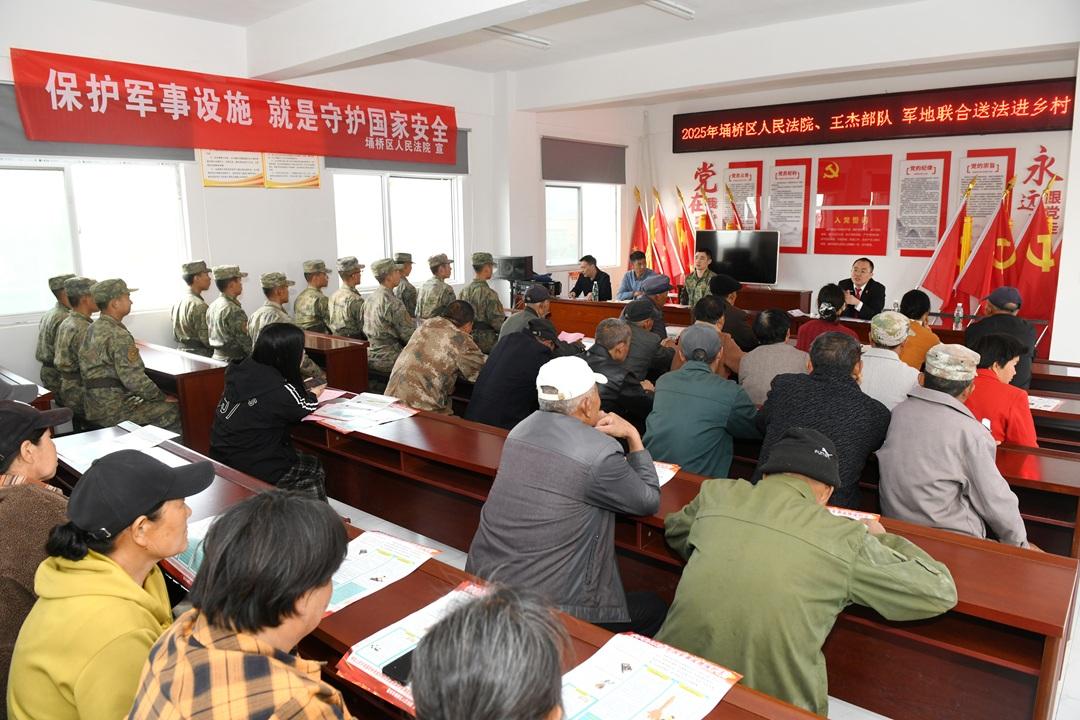 圖為法官就軍事設(shè)施保護(hù)向群眾進(jìn)行細(xì)心講解。