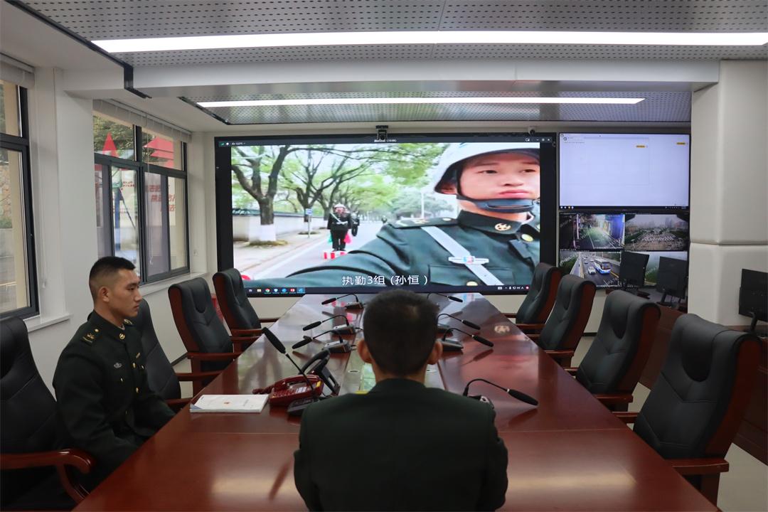 “警備值班室是警備勤務(wù)的指揮調(diào)度場(chǎng)所,我們構(gòu)建警備業(yè)務(wù)信息系統(tǒng)、視頻會(huì)議系統(tǒng)、互聯(lián)網(wǎng)輿情監(jiān)測(cè)系統(tǒng)、公安天眼系統(tǒng),將智慧警備藍(lán)圖完整呈現(xiàn)……”一中隊(duì)中隊(duì)長(zhǎng)任天翔介紹。去年,該隊(duì)對(duì)警備看管室、詢問處、檔案資料室、物品存放室、裝備器材庫(kù)、警備糾察停車場(chǎng)進(jìn)行升級(jí)改造,購(gòu)置警備執(zhí)勤裝備器材多件(套),警備專業(yè)場(chǎng)所面貌煥然一新。