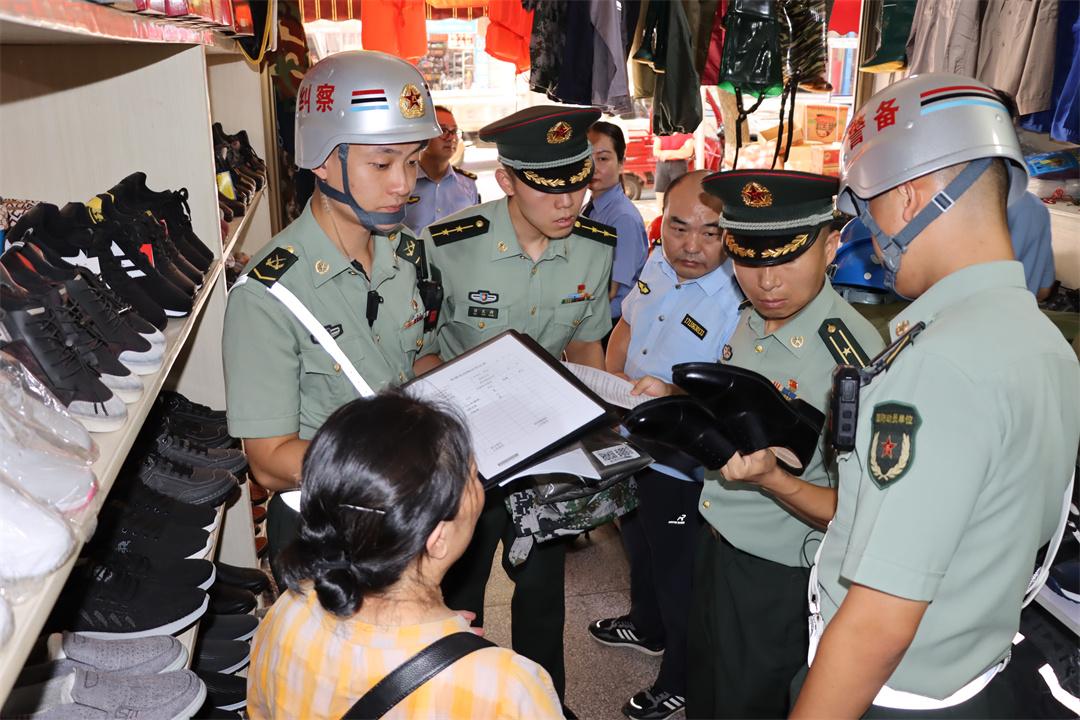 圖為警備糾察隊(duì)與市場(chǎng)監(jiān)管部門開展聯(lián)合執(zhí)法。
