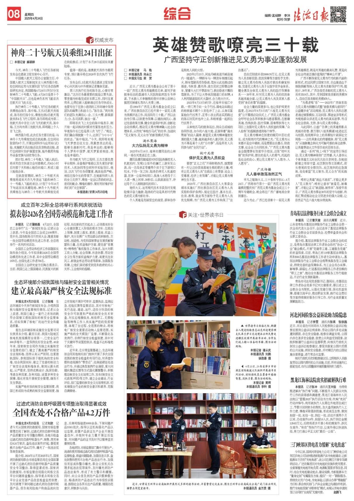 中國載人航天工程辦公室副主任、中國載人航天工程新聞發(fā)言人林西強介紹,經(jīng)空間站應(yīng)用與發(fā)展階段飛行任務(wù)總指揮部研究決定,我國瞄準4月24日17時17分發(fā)射神舟二十號載人飛船。4月24日是第十個“中國航天日”,這也是神舟系列飛船首次在航天日飛赴太空。