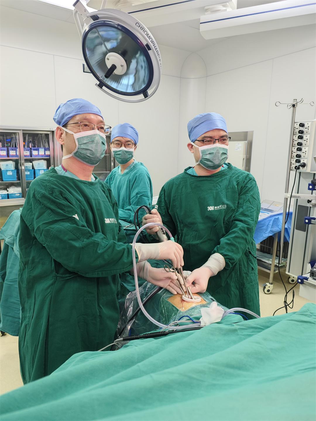 宋偉安帶領(lǐng)團(tuán)隊(duì)反復(fù)研究胸部CT和病情資料,并與麻醉科、外科ICU等多學(xué)科協(xié)作,制定詳細(xì)的圍手術(shù)期應(yīng)急預(yù)案。今年2月19日下午,手術(shù)開始。在胸腔鏡輔助下,宋偉安團(tuán)隊(duì)精準(zhǔn)操作,逐步完成開胸、剖開心包、游離神經(jīng)、分離肺動(dòng)脈圓錐、阻斷肺動(dòng)脈主干等關(guān)鍵步驟。經(jīng)過3個(gè)多小時(shí)努力,團(tuán)隊(duì)成功切除肺門根部侵入心包的惡性腫瘤,并徹底清掃了轉(zhuǎn)移的淋巴結(jié)。