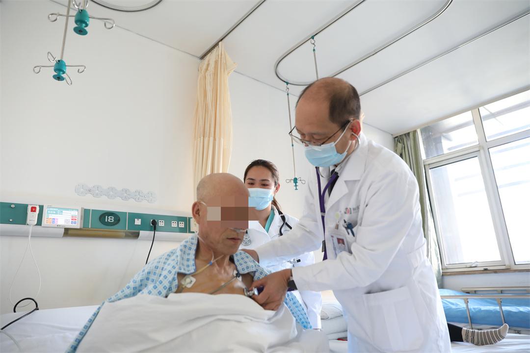 圖為胸外科主任宋偉安正在為患者檢查身體。