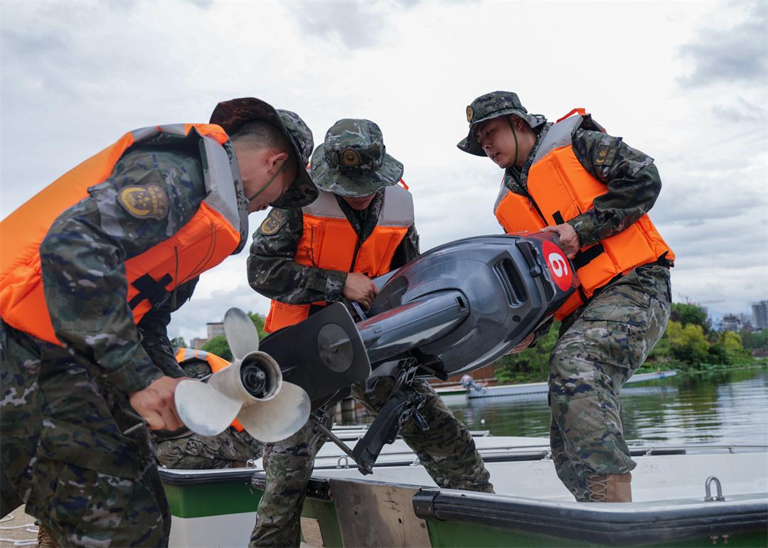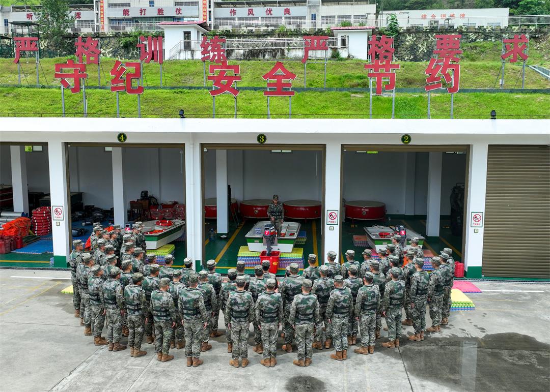 “當前,駐地已進入汛期,我們始終立足防大汛、搶大險、救大災(zāi),著眼任務(wù)需求,開展全要素實戰(zhàn)化訓(xùn)練。通過單兵精練、編組合練、綜合演練,全面錘煉部隊復(fù)雜環(huán)境遂行任務(wù)能力,確保遇有情況拉得出、救得下、打得贏?!蔽渚髦ш狀I(lǐng)導(dǎo)陶建榮說。