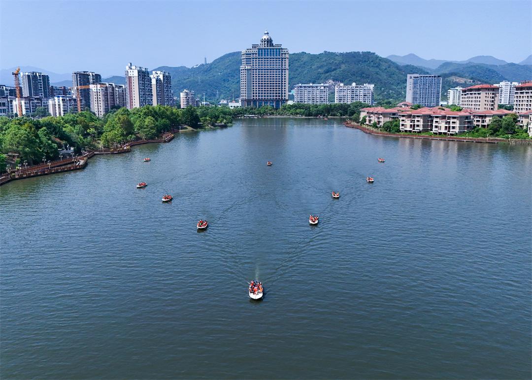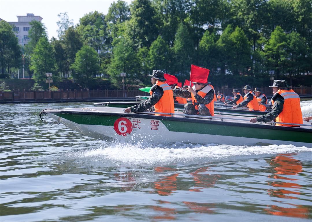 連日來,福建省三明市沙縣區(qū)鳳崗街道龍湖公園水域一片火熱練兵景象。隨著指揮員一聲令下,十余艘舟艇如離弦之箭,破浪而出。