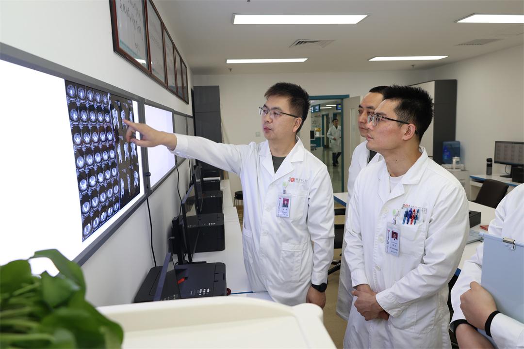 圖為陳華主任醫(yī)師帶領(lǐng)團(tuán)隊正在查看患者的片子影像,仔細(xì)分析傷情。鞠文富 攝