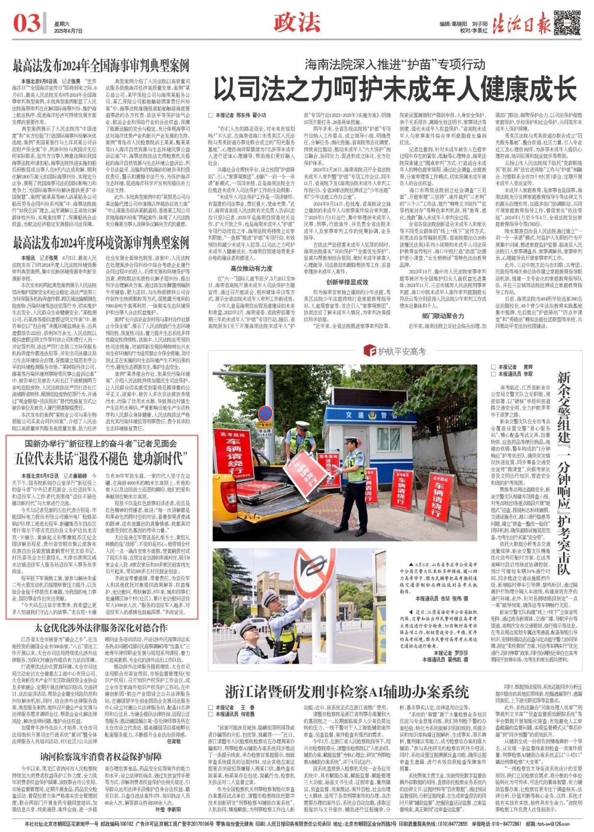 6月6日下午,國務(wù)院新聞辦公室舉行“新征程上的奮斗者”中外記者見面會(huì),五位退役軍人和退役軍人工作者代表圍繞“退役不褪色 建功新時(shí)代”與大家進(jìn)行交流。