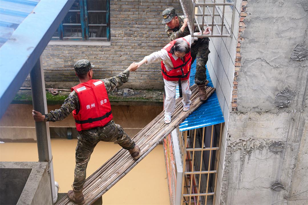6月24日凌晨4時許,武警貴州總隊黔東南支隊出動80余名官兵攜帶救生衣、沖鋒舟、皮劃艇等救援器材連夜奔赴一線。