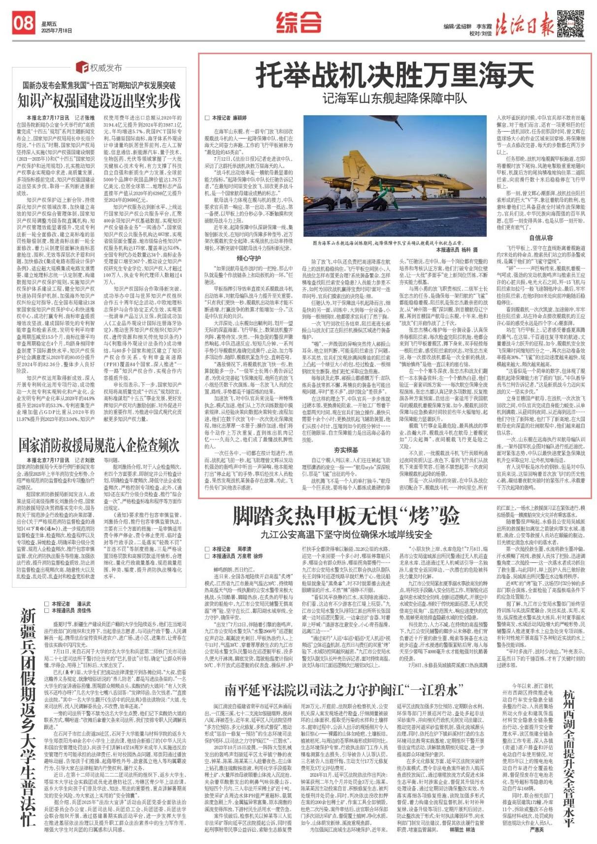 站在飛行甲板上,記者感受著盛夏蒸騰的暑氣。在這里,千百道往復(fù)尋常的航跡,丈量著戰(zhàn)斗力躍升的征程。如今,艦載機安全放飛保障時間縮短四分之一,再次出動準備效率提高30%?!帮w鯊”的出動速度越來越快,規(guī)模越來越大,頻次越來越高。
