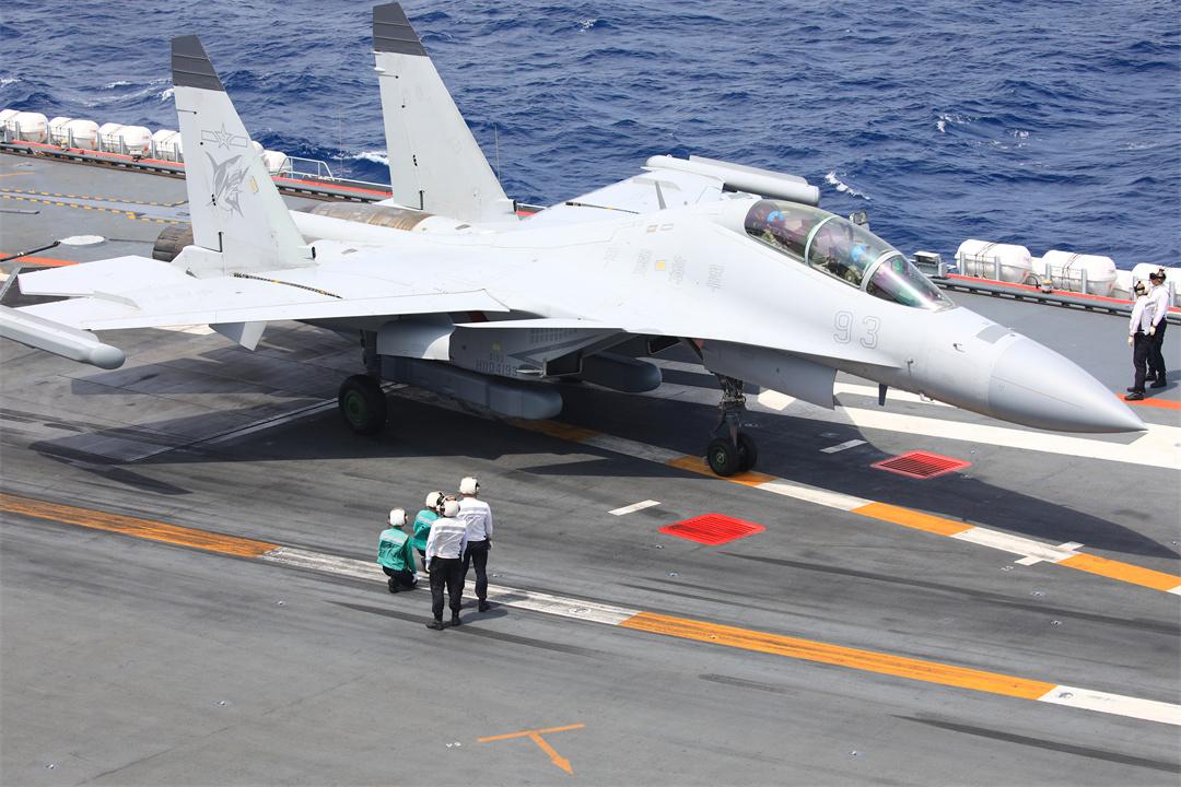 一次,山東艦在遠海執(zhí)行雙航母編隊訓練,一架外國軍機企圖對編隊進行抵近滋擾。面對緊張態(tài)勢,中隊以最快速度緊急保障戰(zhàn)機升空采取應(yīng)對,讓外機知難而退。