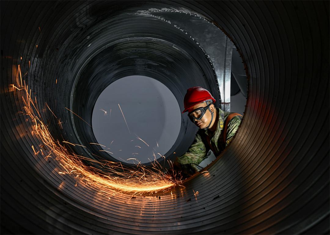“照這個進度下去,肯定會影響整個工期?!币淮危彻こ踢M入施工高峰,鋼板打孔數(shù)量呈幾何級數(shù)增長,采取傳統(tǒng)方式速度慢、耗時長,急得營連領(lǐng)導(dǎo)上了火。崔道虎帶領(lǐng)幾名骨干經(jīng)過反復(fù)摸索,成功研制出鋼板自動沖孔機,將工作時間較以前縮短近90%。