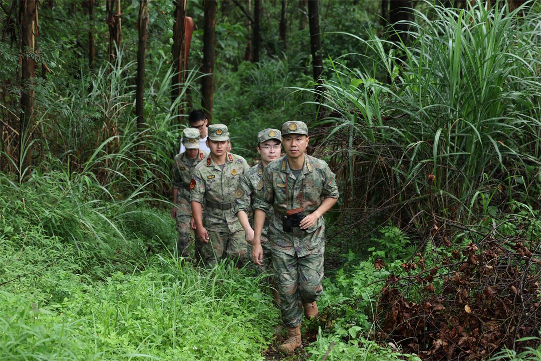 圖為謝亮(前一)帶隊組織軍地聯(lián)合勘察。梁凱昌 攝