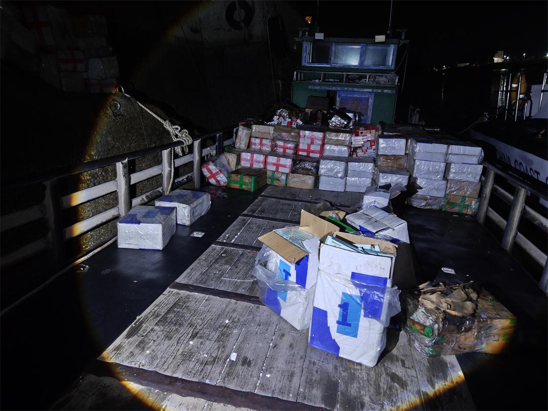 當(dāng)日凌晨1時(shí)50分許,寧德海警局霞浦第二工作站執(zhí)法艇在牙城灣附近海域巡邏時(shí),一艘靠泊碼頭的無船名號可疑泡沫船進(jìn)入執(zhí)法員視野,且有多名人員正在緊急卸貨。海警執(zhí)法艇隨即向該船靠近,最終將5名犯罪嫌疑人抓獲。