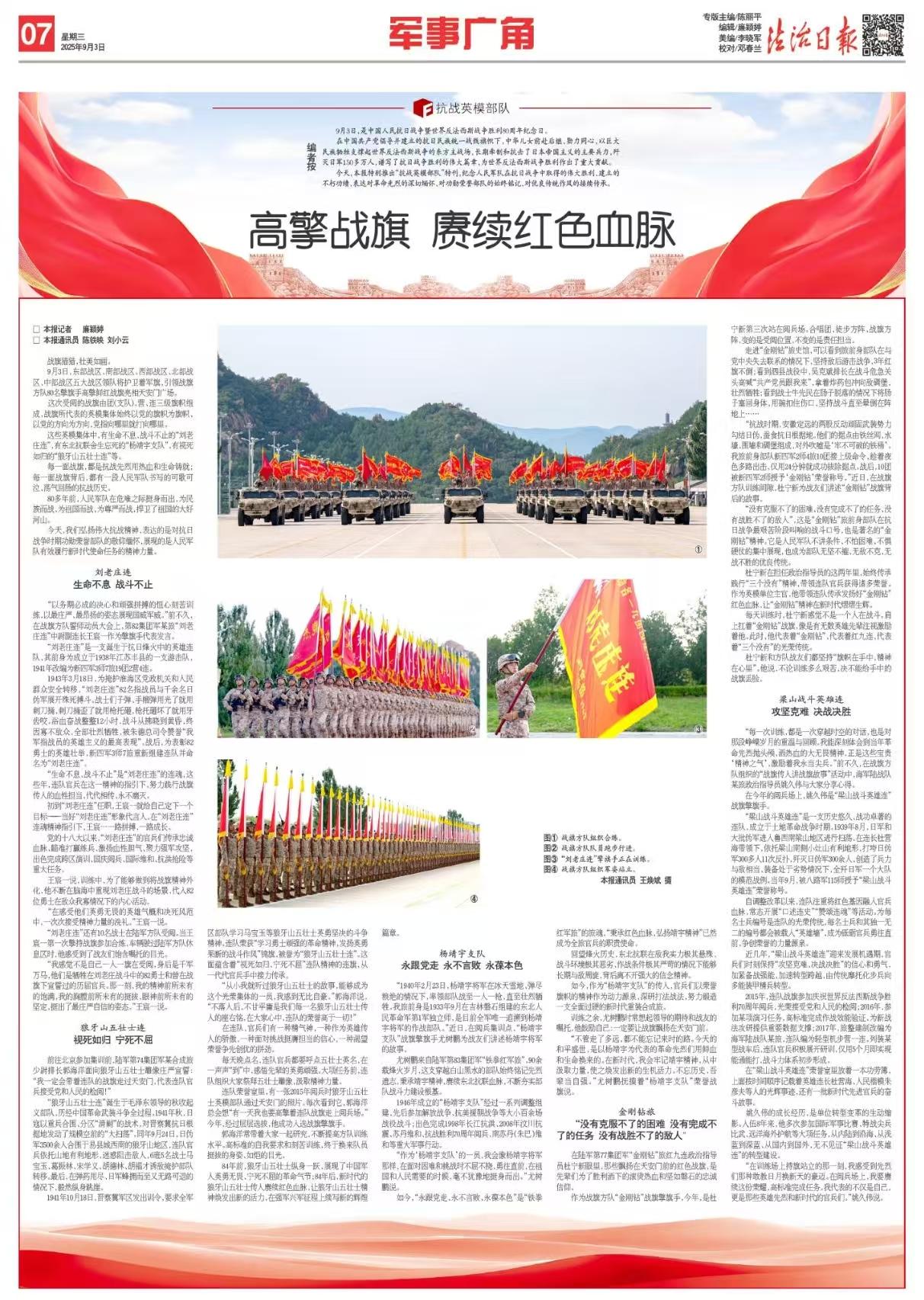 今天,本報(bào)特別推出“抗戰(zhàn)英模部隊(duì)”特刊,紀(jì)念人民軍隊(duì)在抗日戰(zhàn)爭中取得的偉大勝利、建立的不朽功績,表達(dá)對(duì)革命先烈的深切緬懷、對(duì)功勛榮譽(yù)部隊(duì)的始終銘記、對(duì)優(yōu)良傳統(tǒng)作風(fēng)的接續(xù)傳承。