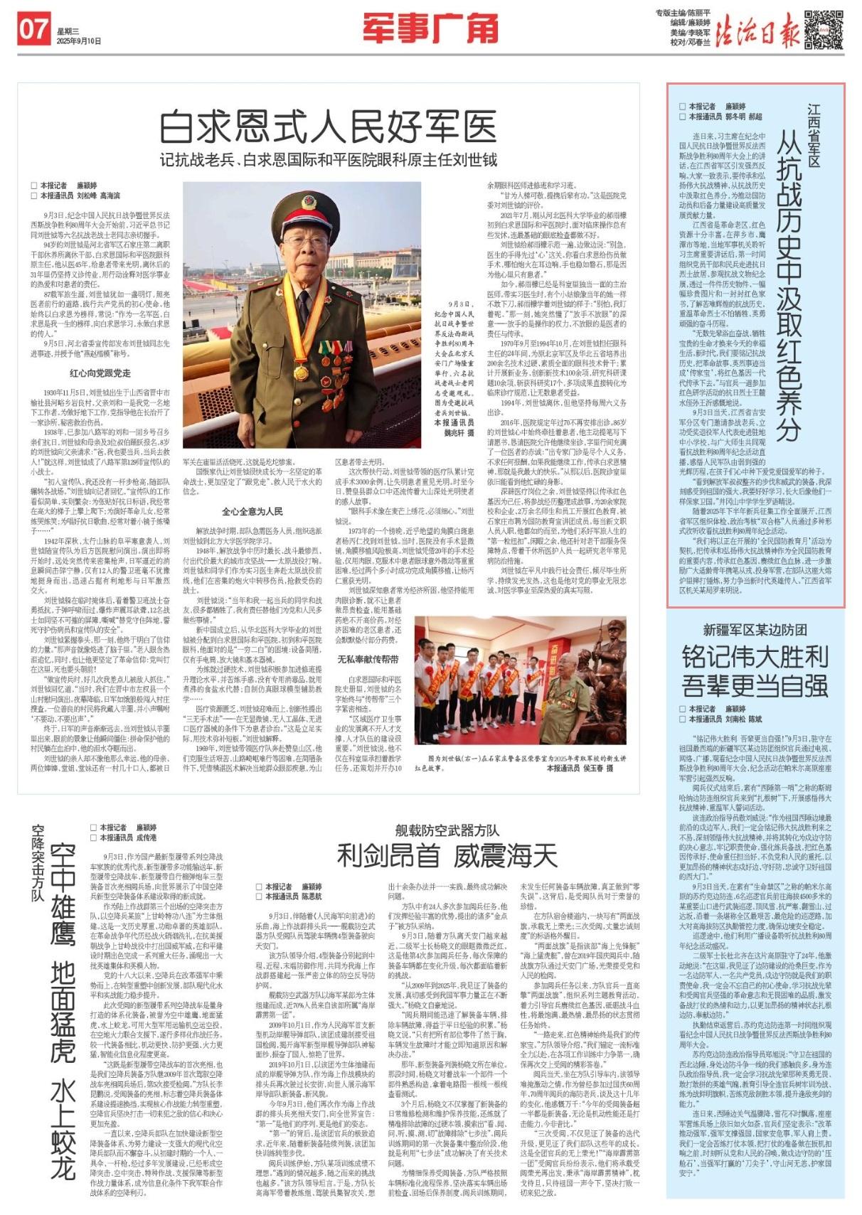 9月3日當(dāng)天,江西省吉安軍分區(qū)專門邀請參戰(zhàn)老兵、立功受獎(jiǎng)退役軍人代表走進(jìn)駐地中小學(xué)校,與廣大師生共同觀看抗戰(zhàn)勝利80周年紀(jì)念活動(dòng)直播,感悟人民軍隊(duì)由弱到強(qiáng)的光輝歷程,在孩子們心中種下愛黨愛國愛軍的種子。