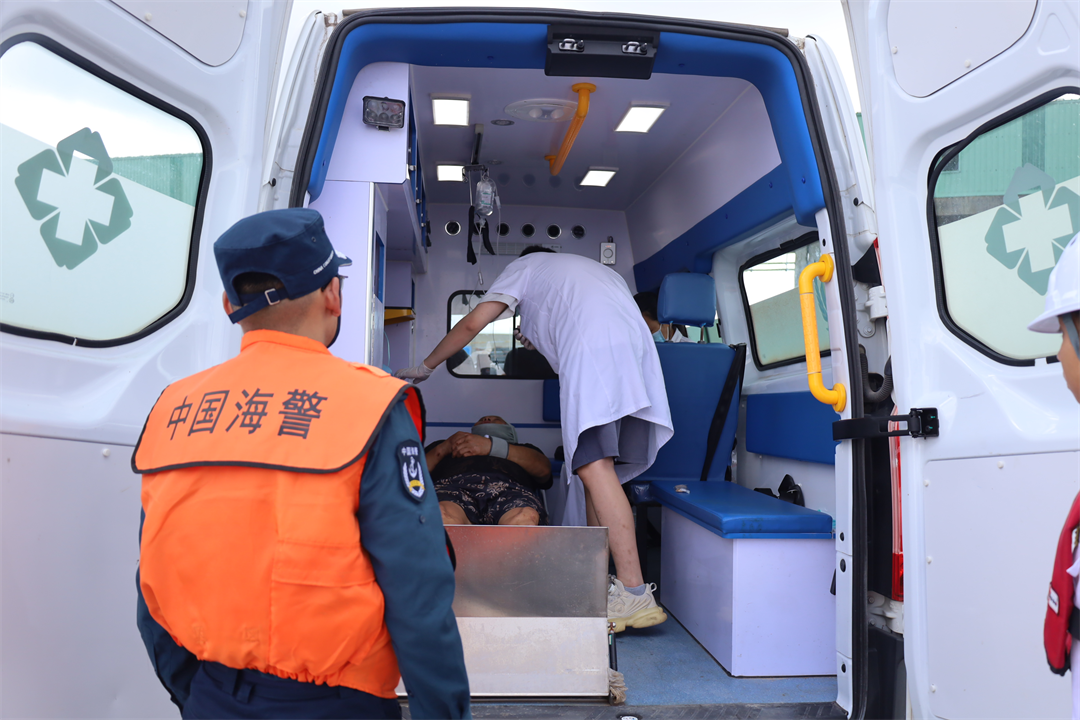 中國海警局直屬第三局橫琴艦接警后立即組織航渡救援,克服夜航能見度較差以及2米海浪的惡劣海況,快速馳援。抵達(dá)現(xiàn)場后,橫琴艦兩名海警醫(yī)務(wù)人員對傷員迅速進(jìn)行救治,實施止血包扎、口服補液等緊急醫(yī)療措施,及時有效穩(wěn)定了傷員狀況。